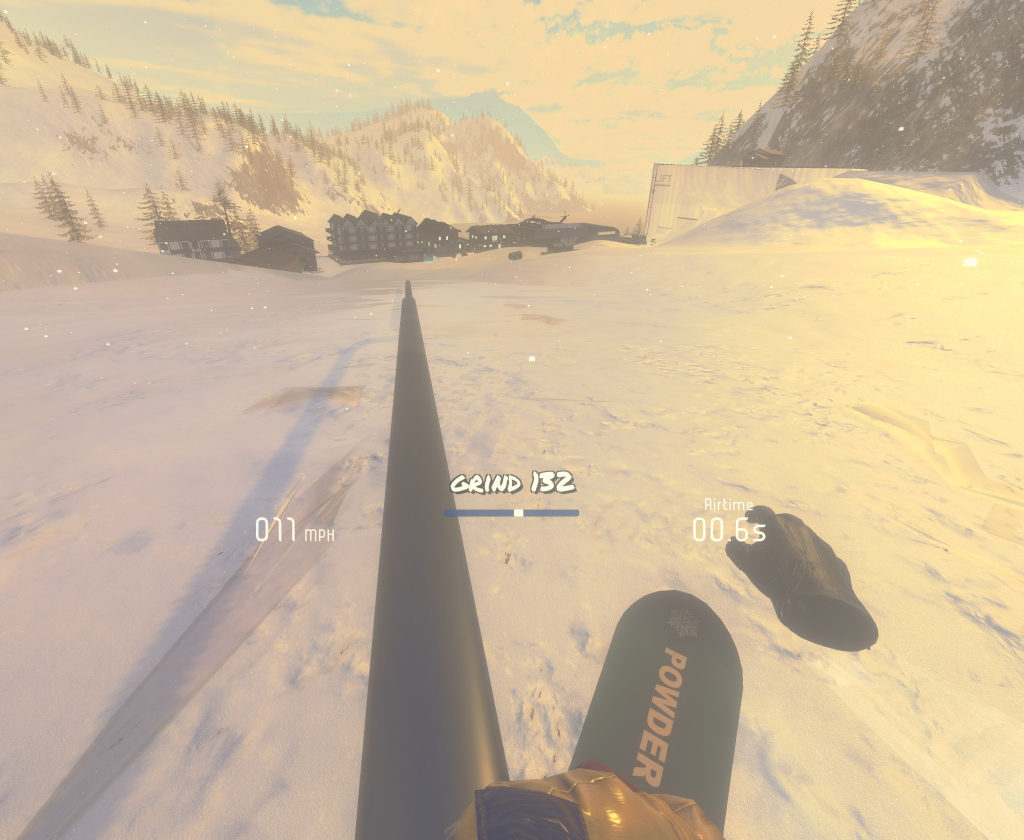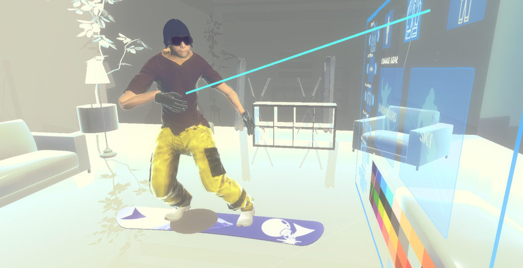 With snowboarding, you choose a stance: “Regular” if you’re right-handed and “Goofy” if you’re left-handed. The nose, or direction of your board will go in the opposite direction of your handedness. “Regular” riders will look over their left shoulder and point the left controller in the direction they want to travel and vice-versa.