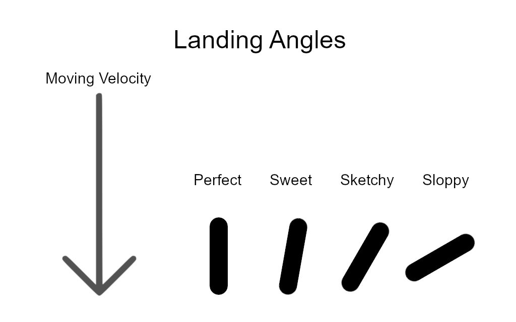 When landing tricks, landing in the direction of travel will be considered stylish and will award you more points. Landing at the wrong angle will lower your points and negatively impact your speed.