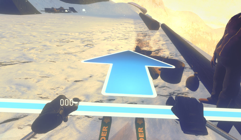 Imagine you’re holding handlebars to a bike. Steering a bike works the same way as steering your skis in Powder VR. Or better yet, imagine you’re using an old-timey divining rod.